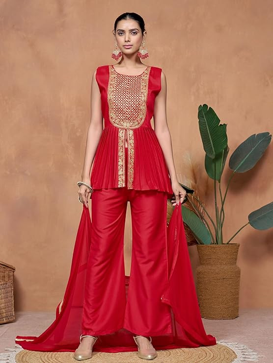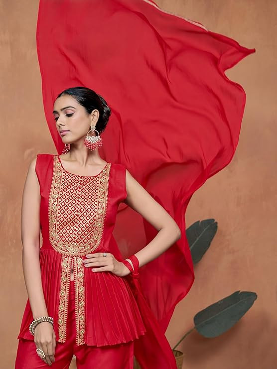 • Kurta details || Fabric : Cotton Silk | Pattern : Embroidered & Yoke Embroidery | Kurta Type : A-line | Color : Red