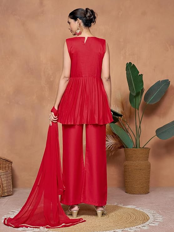 • Bottom Details || Fabric : Cotton Silk | Color : Red | Pattern : Solid | Style : Palazzo