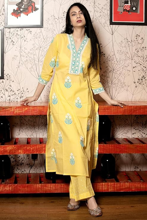 Style: Straight || Length: Calf Length || Sleeves: 3/4 Sleeves || Size Chart- Kurta-S-36 in, M-38 in , L-40 in , XL-42 in , XXL-44 in,Pant :- S-28 in, M-30 in , L-32 in, XL- 34 in , XXL- 36 in,For More Please refer to the size Chart below.