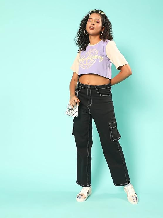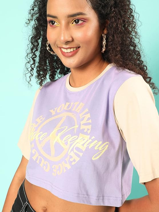 JUNEBERRY Women Graphic Print Colourblock Round-Neck T-Shirt for Women