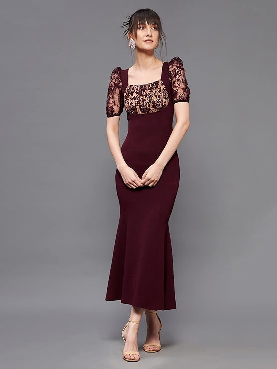 • Pattern: Floral | Fit: Slim Fit | Sleeve: Short Sleeve | Style: Lace Overlaid | Length: Maxi | Neck: Square Neck