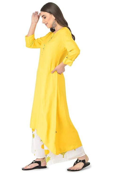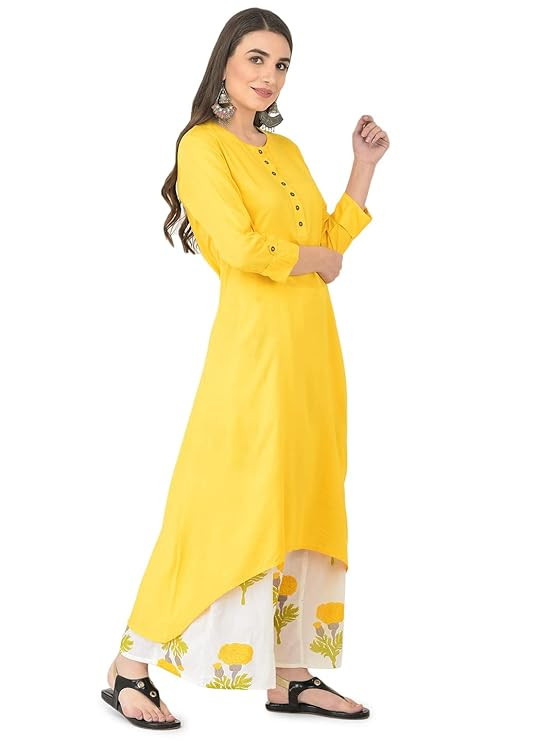 FEATURES & EXCELLENT FITTING :- KURTI :: Sleeves :-: 3/4th Fold-up Sleeve, Pattern : solid and printed, Boat Neck, Buttoned are fixed Not Openable, PALAZZO :: Stylish Printed Palazzo , Length : 38-39 Inches , Closer Type :: Drawstring (Pack Of : 1 Kurta 1 Palazzo )