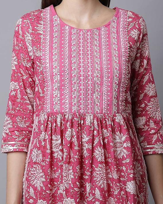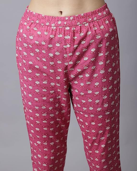 Rajnandini Women's Pure Cotton Jaipuri Printed & Embroidered Kurta Set With Dupatta (JOPLVL279-S_Pink_S)