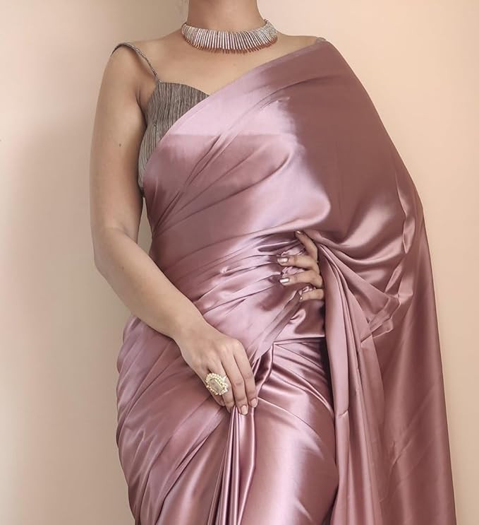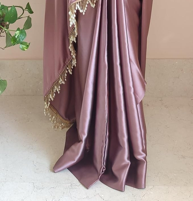 Saree Fabric : Satin Silk || Blouse Fabric : Satin Silk . The blouse worn by the model is for modeling purposes only. A blouse is made of the same fabric and color as a saree.