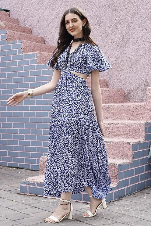 Sheetal Associates Women's Printed Fit & Flare V-Neck Casual Maxi Dress