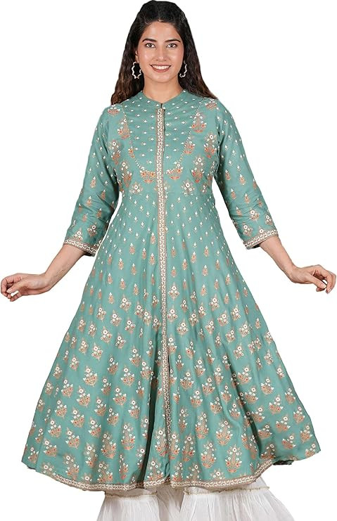 Yash Gallery Women's Rayon Floral Printed Anarkali Kurta for Women