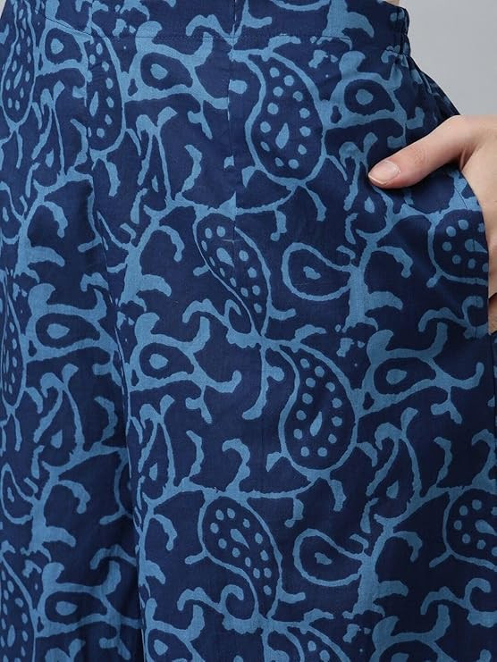 Amayra Women's Cotton Printed Straight Kurta with Palazzos and Dupatta Set