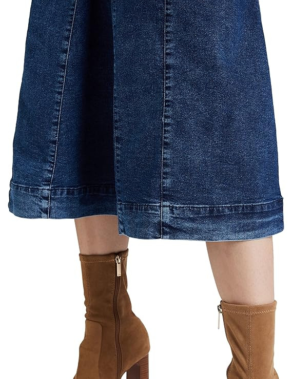 Amazon Brand - Symbol Skater Women's Denim A-line One Piece Midi Length Dress