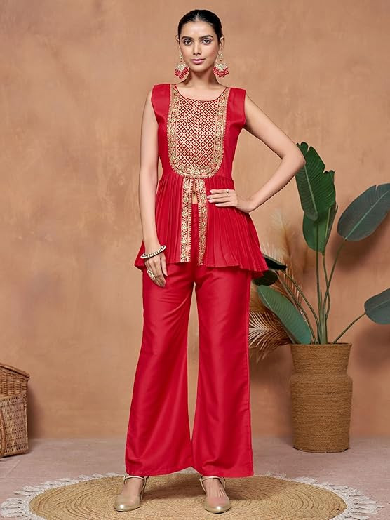 • Kurta details || Fabric : Cotton Silk | Pattern : Embroidered & Yoke Embroidery | Kurta Type : A-line | Color : Red