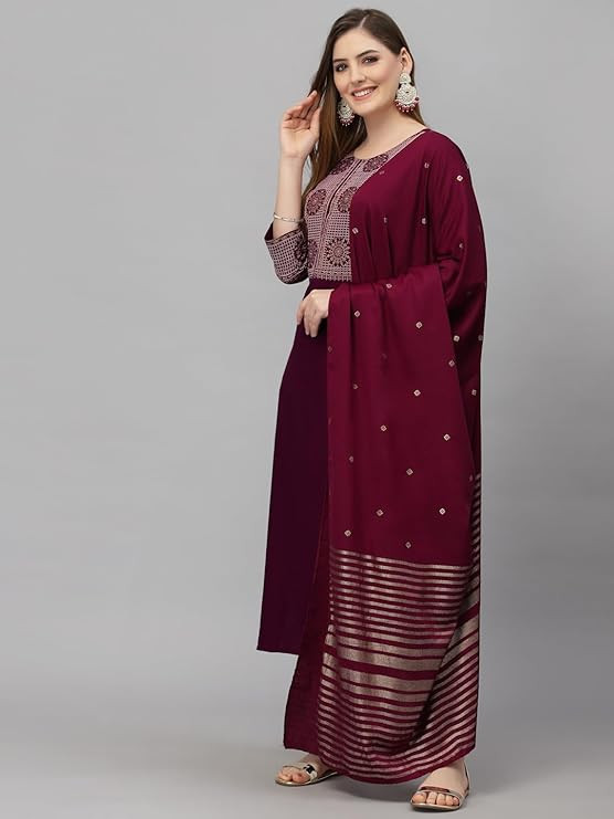 KLOSIA Women Viscose Embroidered Kurta And Pant Set With Dupatta, Kurta Set