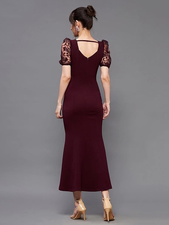 • Pattern: Floral | Fit: Slim Fit | Sleeve: Short Sleeve | Style: Lace Overlaid | Length: Maxi | Neck: Square Neck