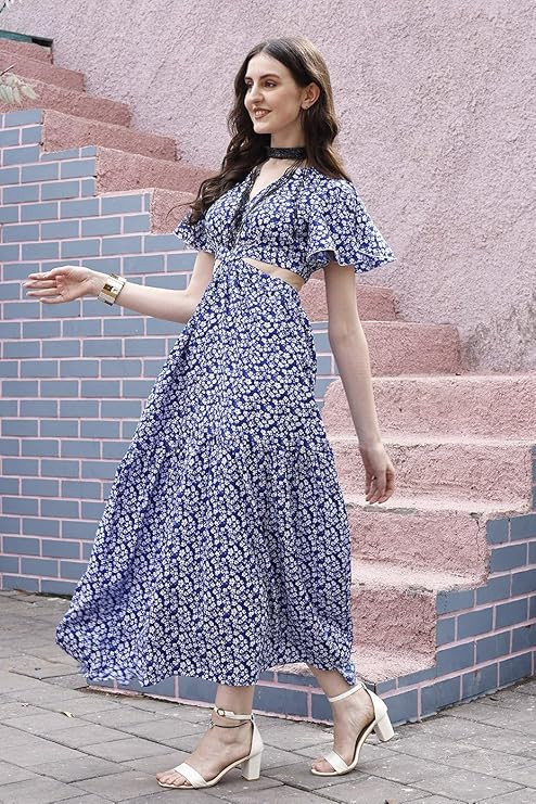 Sheetal Associates Women's Printed Fit & Flare V-Neck Casual Maxi Dress