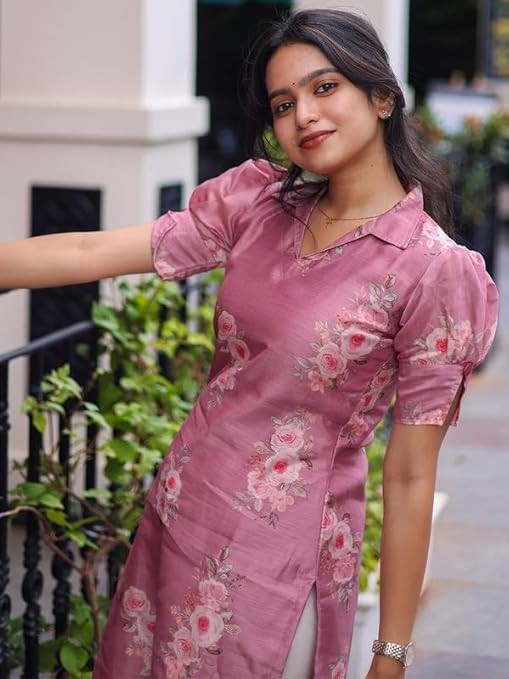 • Style - Straight with front split | Length - Calf Length | Sleeves - Elbow Sleeves |Work -Floral Printed